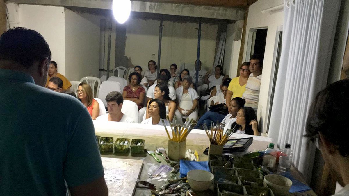Ontem, 23, no Templo Vovô Pedro, a equipe espiritual de pintores nos trouxe a perfeição da arte através do nosso querido amigo e médium Florêncio Anton. A cada tela uma emoção indescritível. A platéia ficou encantada!