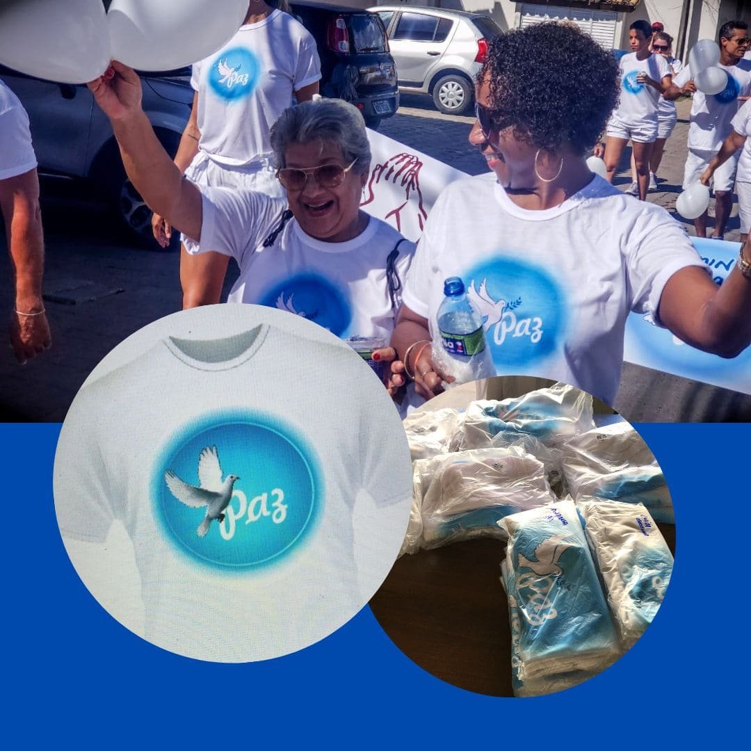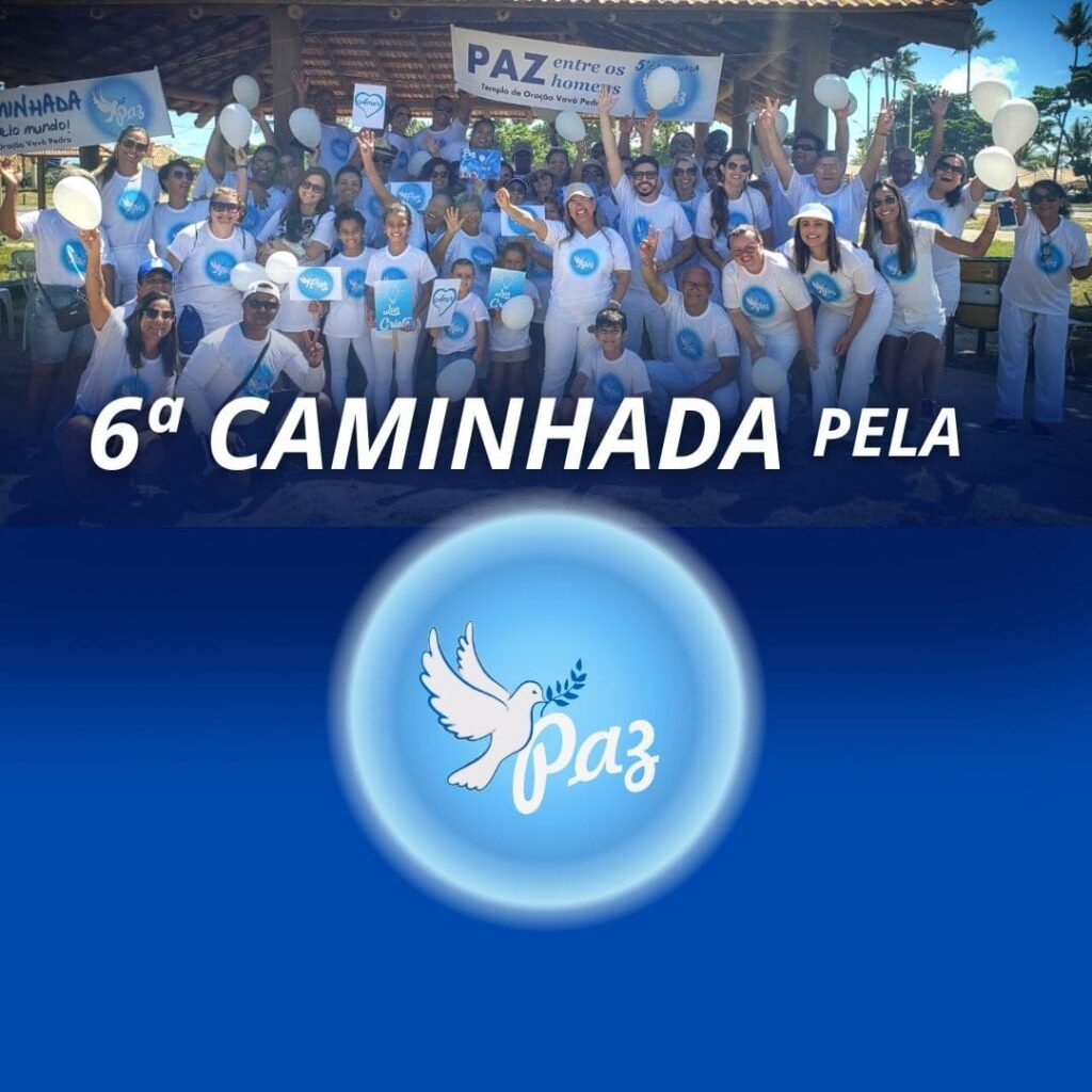 O kit caminhada inclui: camiseta da paz, café da manhã, água durante o evento e almoço (feijoada) e sobremesa. Valor do kit caminhada: R$67,00.