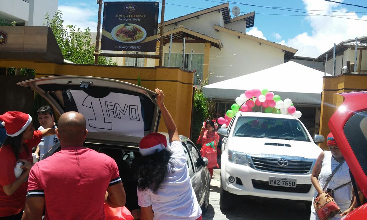 Os preparativos começaram durante a semana com a conferência e arrumação dos presentes. Depois a produção do almoço, e por fim, a organização dos voluntários e carros do comboio. O Papai Noel fez a alegria da criançada distribuindo alegria e mais de 300 presentes. Servimos a feijoada com arroz, macarrão e farinha. E a animação do evento ficou por conta do nosso amigo Tuca Almeida! Tudo em sintonia e o resultado não poderia ser outro… tudo perfeito!