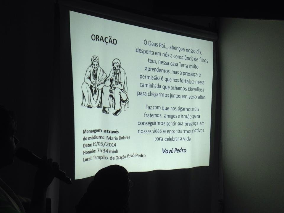 Tema da palestra da nossa querida Tereza Costa no Templo de Oração Irmandade Vovô Pedro.
